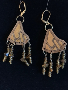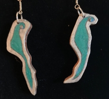 Mike is also an exhibiting member of the Craftsmen's Guild of Mississippi in the jewelry category. This is the second category in which he exhibits his works of art at the Mississippi Crafts Center. His jewelry pieces are very popular and sought after by Scatcat Art patrons. These pieces include necklaces, pins, and earrings of vividly colored or natural wood finished butterflies; western/native American themes of carved arrowheads and feathers ; and whimsical designs .