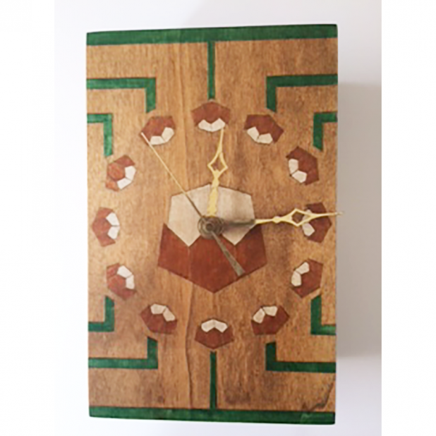 Stylized cotton bolls designed by Mike carved into this working clock - 8 1/2 x 5 1/2 x 3 1/2 inches