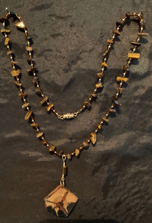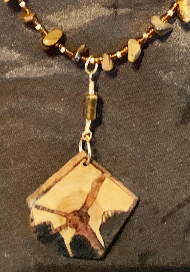 Hand Carved Pentagon Cross Section of Wood on 20" Beaded Chain