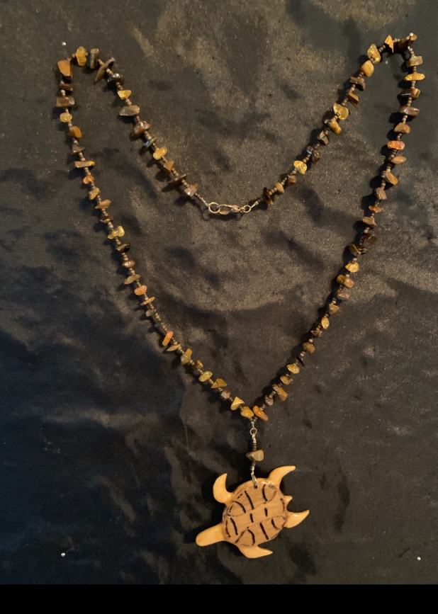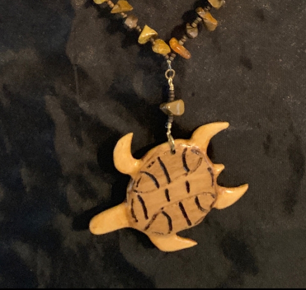 Hand Carved Sea Turtle Pendant on 20" Beaded Necklace