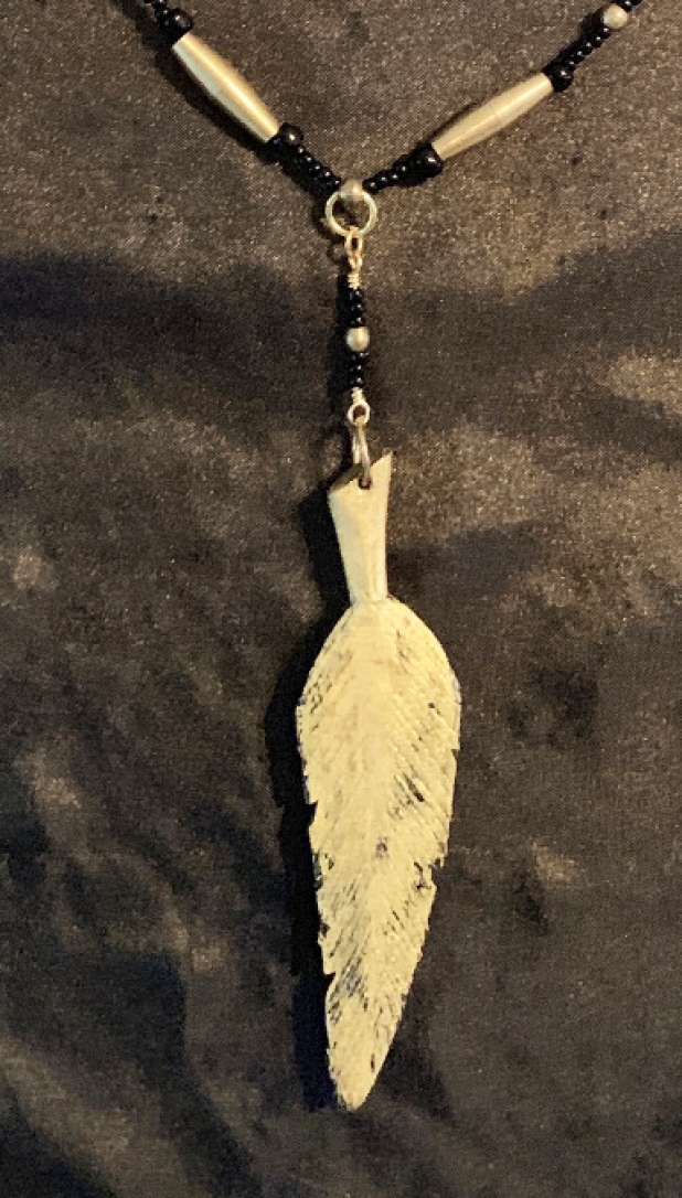 Native American Inspired Wooden Feather Fetish Pendant on 23 inch Chain