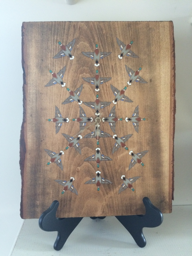 Wooden Slab Working Clock with Illusion Inlay Mallards