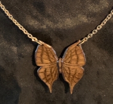 Hand Carved Butterfly Necklace on 18" Gold Chain