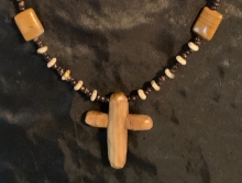 Hand Carved Solid Boxwood Cross Pendant on 20" Beaded Chain