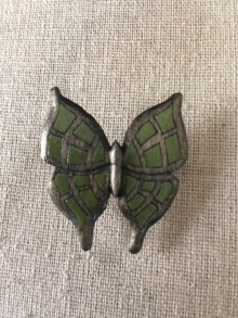Hand Carved Gray/Green Butterfly Pin