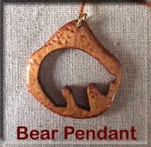 Hand Carved Bear Pendant - 23" Amber Beaded Necklace